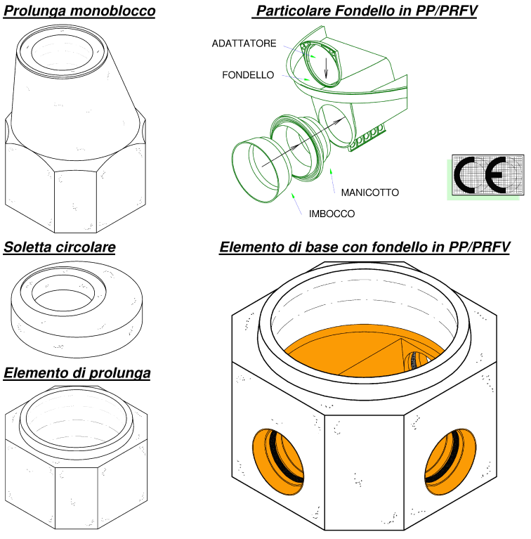 incorporata nel getto. Fondello in PP/PRFV ecologico, inglobato nel getto