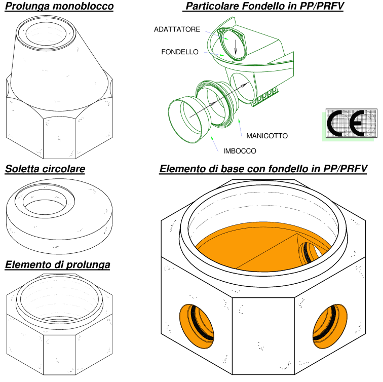 tenuta per il collegamento flessibile dei tubi alla parete del pozzetto. Eventuale rivestimento protettivo,